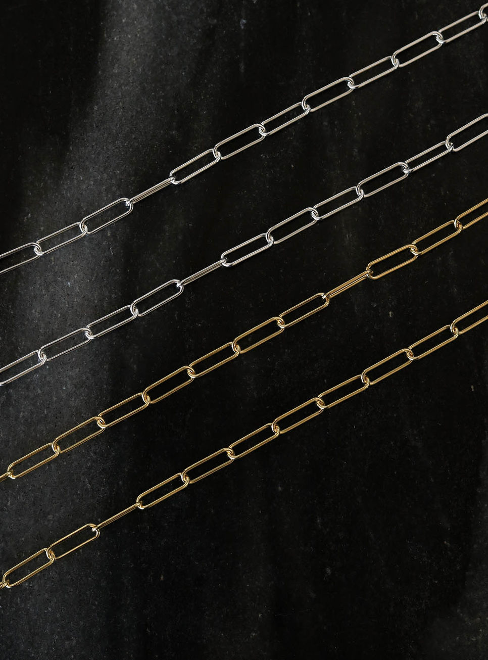 Indulge in the sleek design of our sterling silver paperclip chain, joined with a Sailor/Signoretti clasp. This elegant combination, which is available in your choice of 45cm or 50cm, exudes a timeless charm, offering a classic accessory that fits every wardrobe.